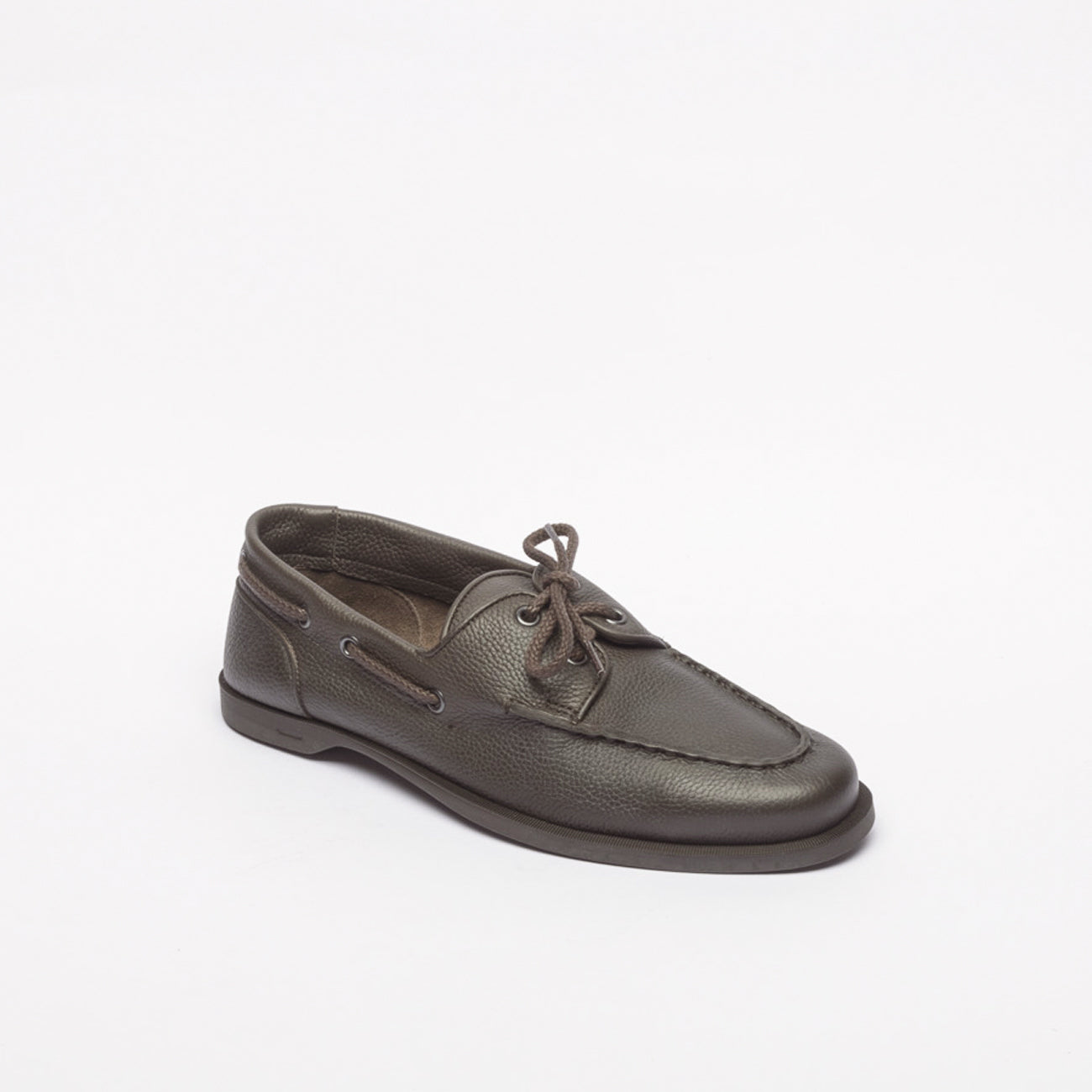 John Lobb mocassino da barca Foil dark brown light grain suola gomma