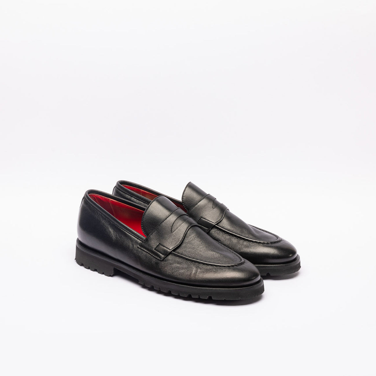 BARRETT PENNY LOAFER IN EXTRA-SOFT LAMBSKIN, MODEL 242043, RUBBER LUG SOLE, BLAKE CONSTRUCTION