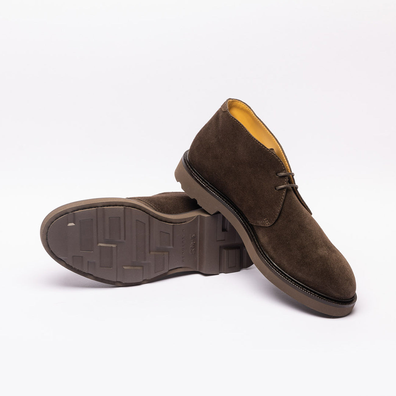 Modica suede 2-eyelet lace-up ankle boot, rubber sole, stormwelt, removable insole, made in Italy.