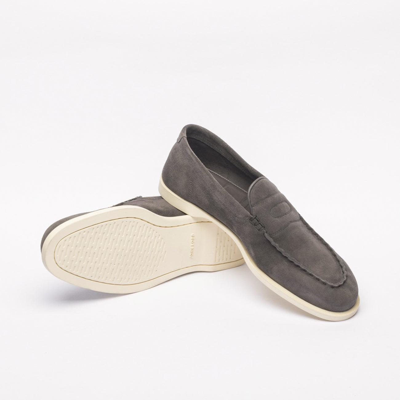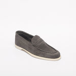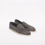 Loafer inspired by the Lopez model by John Lobb, suede, unlined, super flexible rubber sole, blake construction, 423 last, E fitting. Made in England