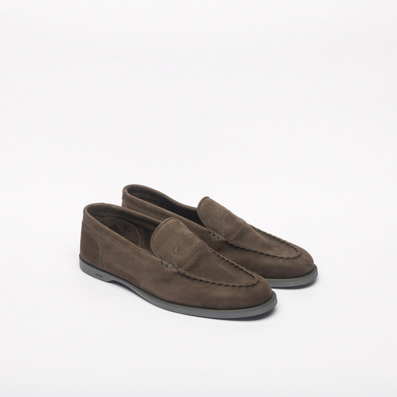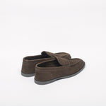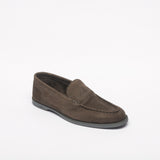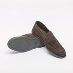 Loafer inspired by the Lopez model by John Lobb, suede, unlined, super flexible rubber sole, blake construction, 423 last, E fitting. Made in England