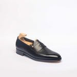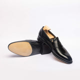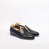 Prestige loafer in black oxford calfskin, smooth and elegant lines, leather sole, John Lobb shoetree included.