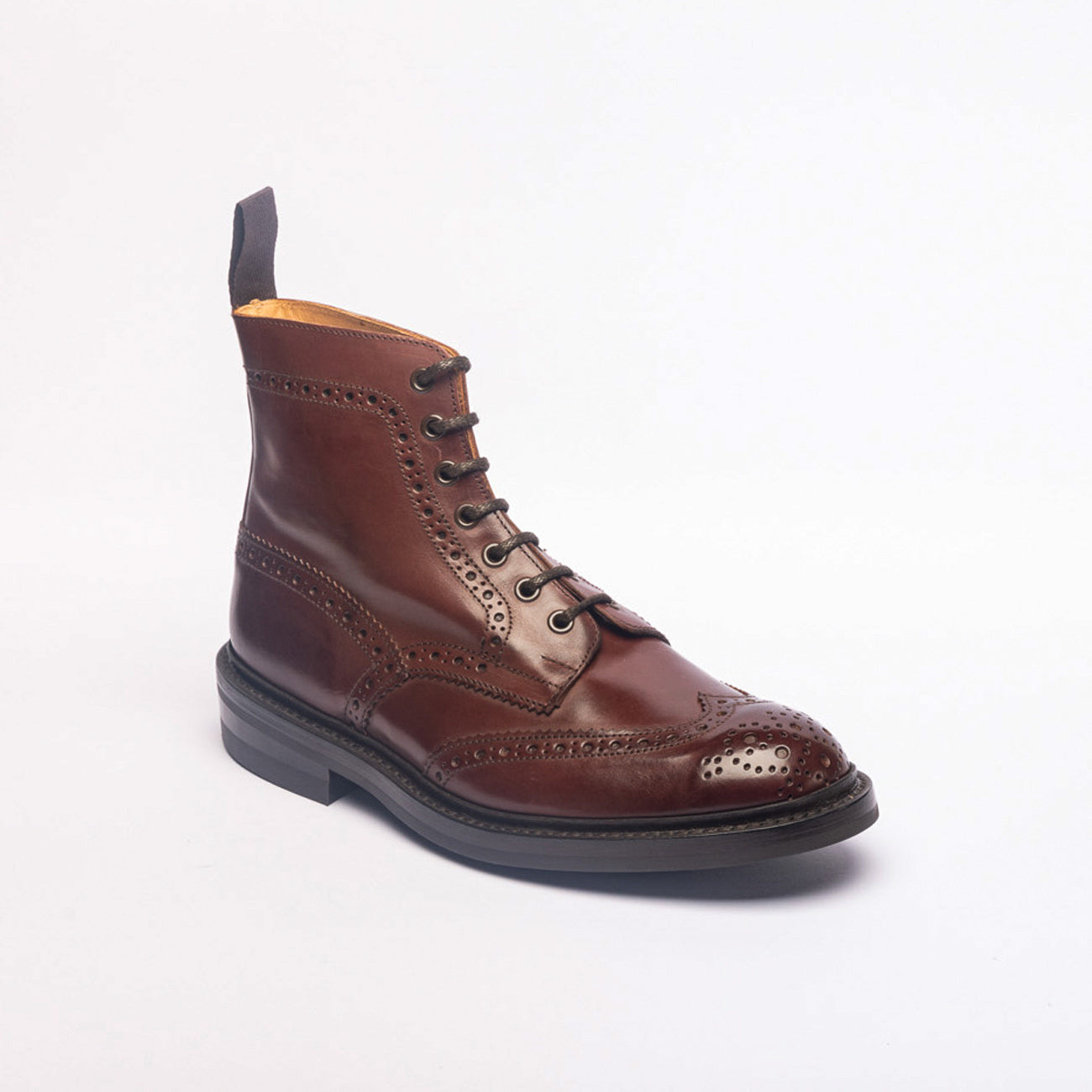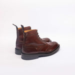 Burgundy calf derby boot with brogues black rubber Dainite sole.