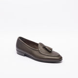 Mocassino con nappine fatto a mano in vitello martellato, vaschetta con fascetta in pelle, soletta interna brevettata B&L imbottita per ammortizzare la camminata, suola in gomma
