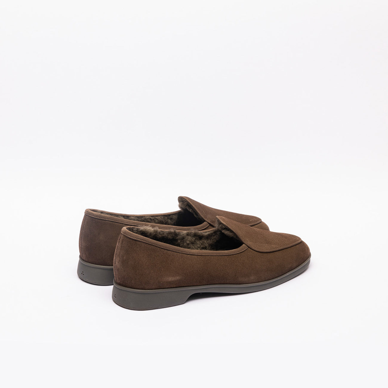 Baudoin & Lange mocassino Stride marrone scamosciato fodera in pelo suola gomma
