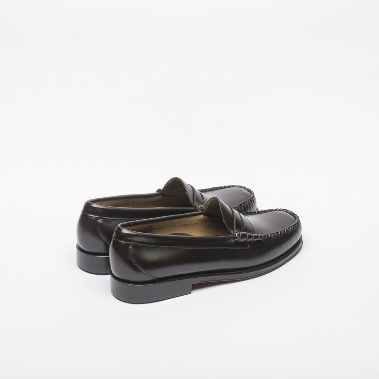 G.H. Bass modello Weejuns Larson, college, pelle di vitello spazzolata sfoderato cioccolato, suola cuoio.