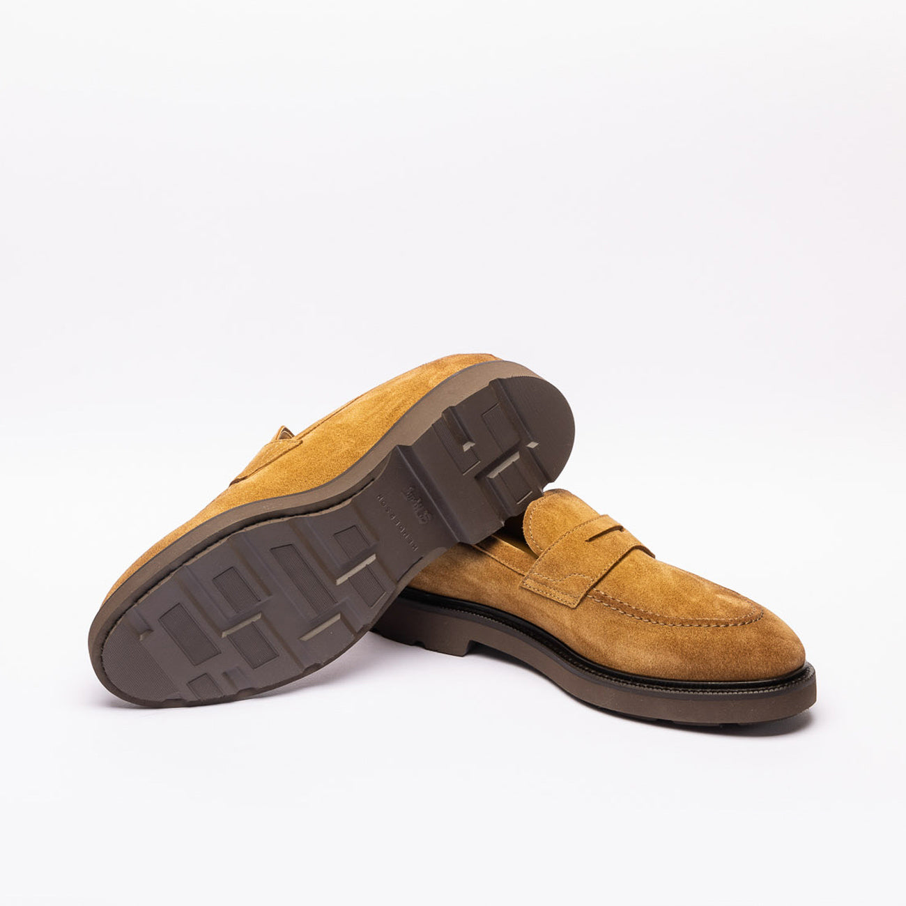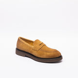 Mocassino scamosciato acacia con fascia, ultra leggero, suola gomma, gradino anti goccia, made in Italy.
