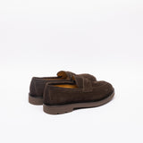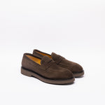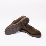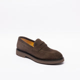 Mocassino scamosciato marrone con fascia, ultra leggero, suola gomma, gradino anti goccia, made in Italy.