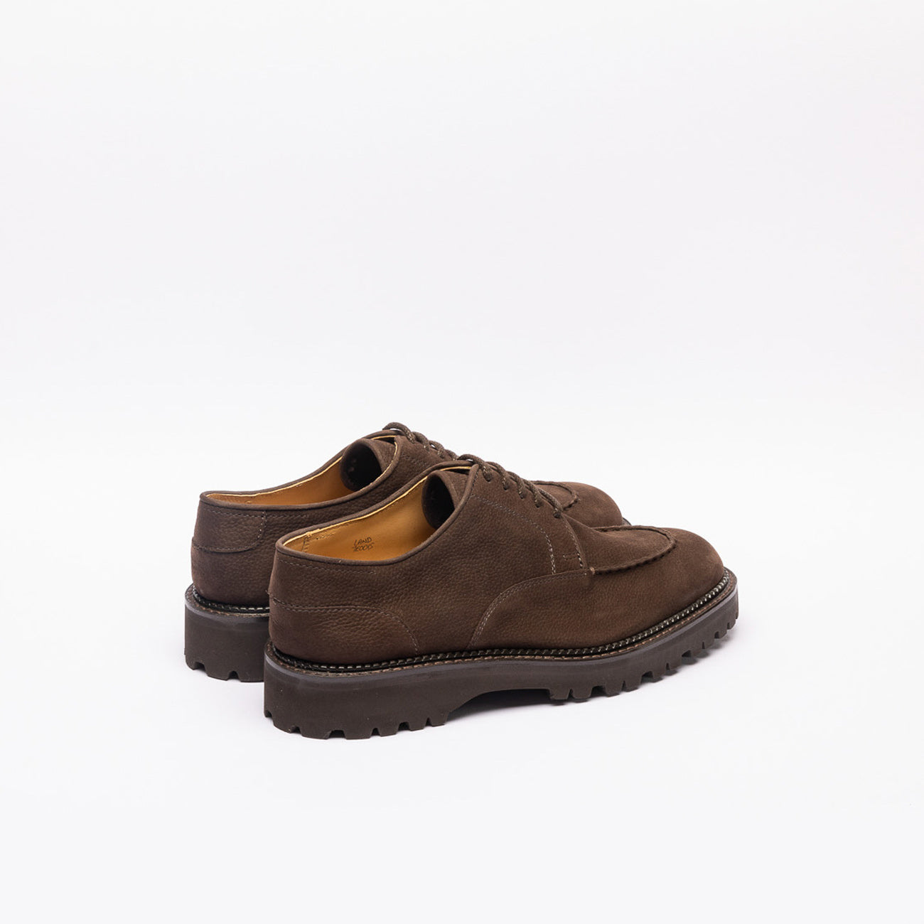 Derby in nubuck bruinn semifoderata con 5 occhielli, cucitura a mano tipo guanti sulla vaschetta, suola hilly leggera e perfetta per ogni superficie, stormwelt anti goccia.