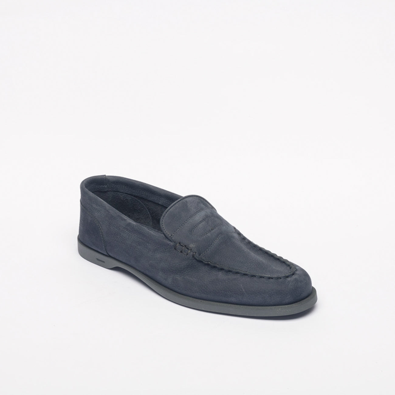 Mocassino che trae ispirazione dal modello Lopez di John Lobb, nabuck, sfoderato, suola in gomma super flessibile, costruzione blake, last 423, fitting E. Made in England