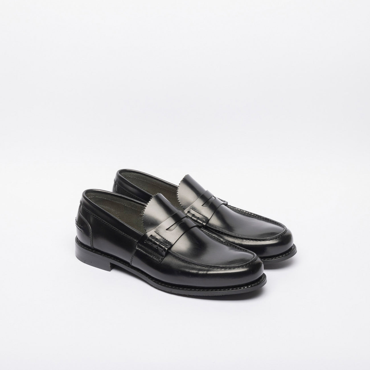 Mocassino penny loafer Cheaney Joseph & Sons Dover in pelle nera spazzolata