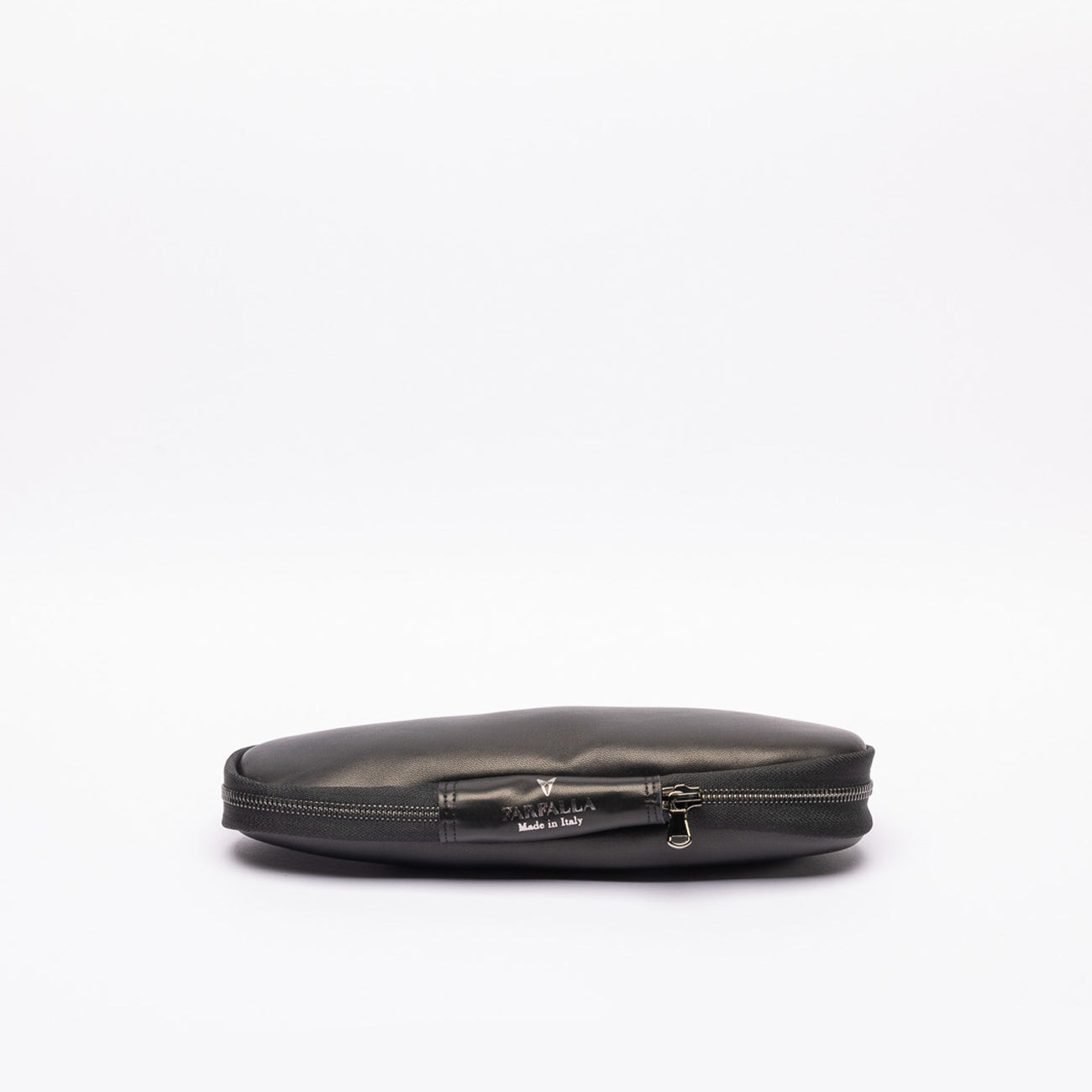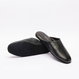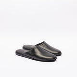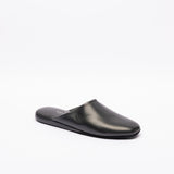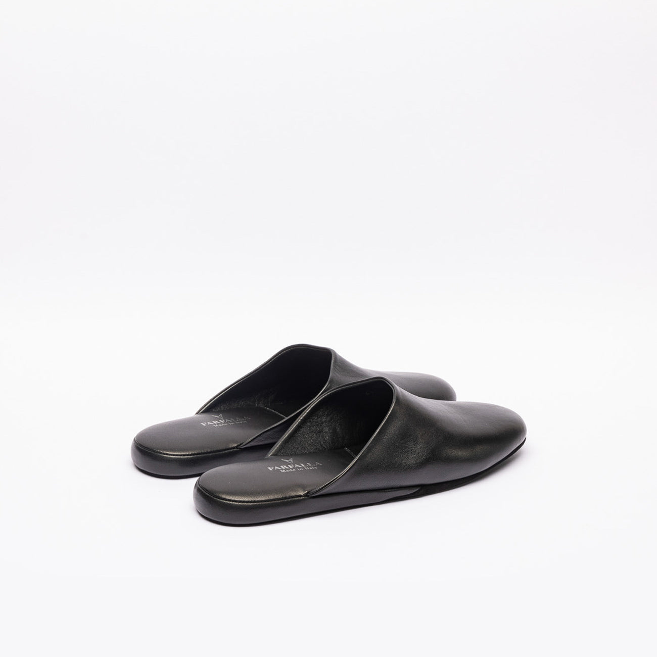 Pantofola aperta in morbidissima nappa, suola scamosciata con custodia in tinta.